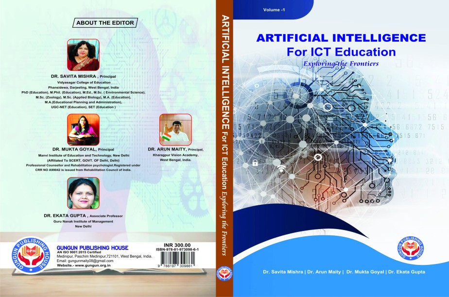 Artificial Intelligence for ICT Education Exploring the Frontiers EDITORS: Dr. Savita Mishra Dr. Mukta Goyal Dr. Arun Maity Dr. Ekata Gupta Gungun Publishing House First Published in 6 May, 2024 ISBN : 978-81-973098-6-1 Price: 300.00 No. of Pages: 196