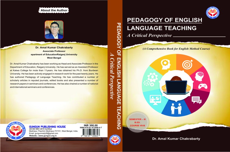 Pedagogy of English Language Teaching: A Critical Perspective (A Comprehensive Book for English Method Course) SEMESTER -II & III B.ED. COURSE VII-B Author Dr. Amal Kumar Chakrabarty GUNGUN PUBLISHING HOUSE 1st Edition 2024 July ISBN: 978-81-973098-4-7 Price: 250.00 No. of Pages: 323 Website: www.gungun.org.in 9647222836