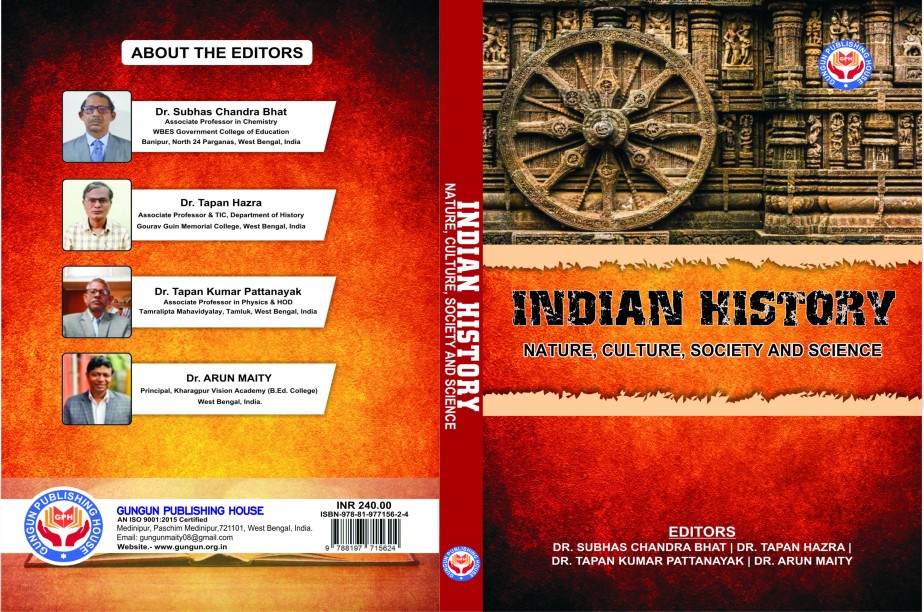 INDIAN HISTORY : Nature, Culture, Society and Science EDITORS: Dr. Subhas Chandra Bhat, Dr. Tapan Hazra,Dr. Tapan Kumar Pattanayak,Dr. Arun Maity GUNGUN PUBLISHING HOUSE ISBN : 978-81-977156-2-4 Price: 240.00 No. of Pages: 142