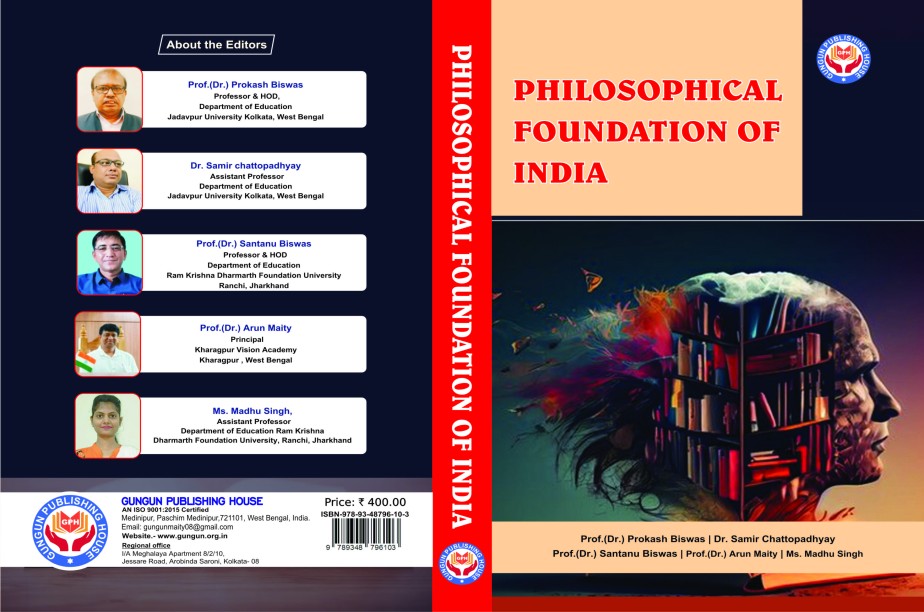 Philosophical foundation of India Language: English Copyright: Prof.(Dr.) Prokash Biswas, Dr. Samir Chattopadhyay, Prof.(Dr.) Santanu Biswas, Prof.(Dr.) Arun Maity, Ms. Madhu Singh Editors: Prof.(Dr.) Prokash Biswas, Dr. Samir Chattopadhyay, Prof.(Dr.) Santanu Biswas, Prof.(Dr.) Arun Maity, Ms. Madhu Kumari ISBN: 978-93-48796-10-3 Price: 500.00 No. of Pages: 187 Gungun Publishing House Phone Number : +91 9647222836 Website : www.gungun.org.in