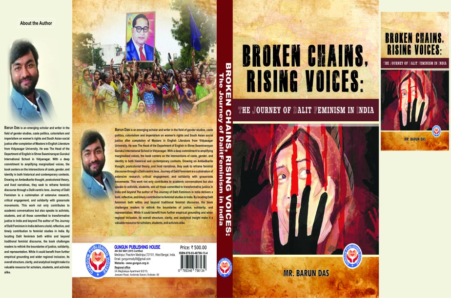 Title: Broken Chains, Rising Voices: The Journey of Dalit Feminism in India Language: English Copyright: BARUN DAS © Author: BARUN DAS ISBN: 978-93-48796-22-6 Doi-https://doi-ds.org/doilink/10.2025-77491884/gungun 1 / book-1/2025/A1/ Price: 500.00 No. of Pages: 291 Phone Number: +91 9647222836 Website: www.gungun.org.in